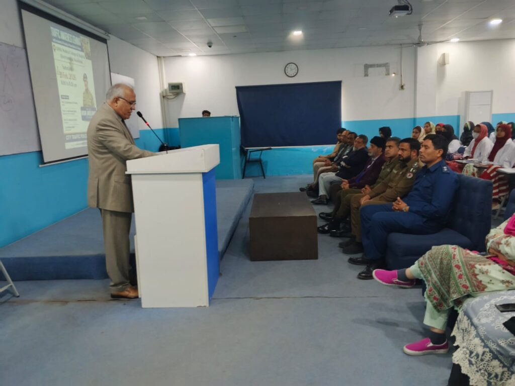 The Vice Principal, Prof. Dr. Ambreen Farrukh, was also present at the seminar. She appreciated the efforts of City Traffic Police Faisalabad and highlighted the importance of awareness programs for students. She emphasized that responsible driving and adherence to traffic rules are essential for building a safe and disciplined society.